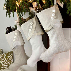 Family Christmas stockings, in all the shades of white, cream, ivory, and bone, are truly timeless -- plus anything but bland and boring!!!